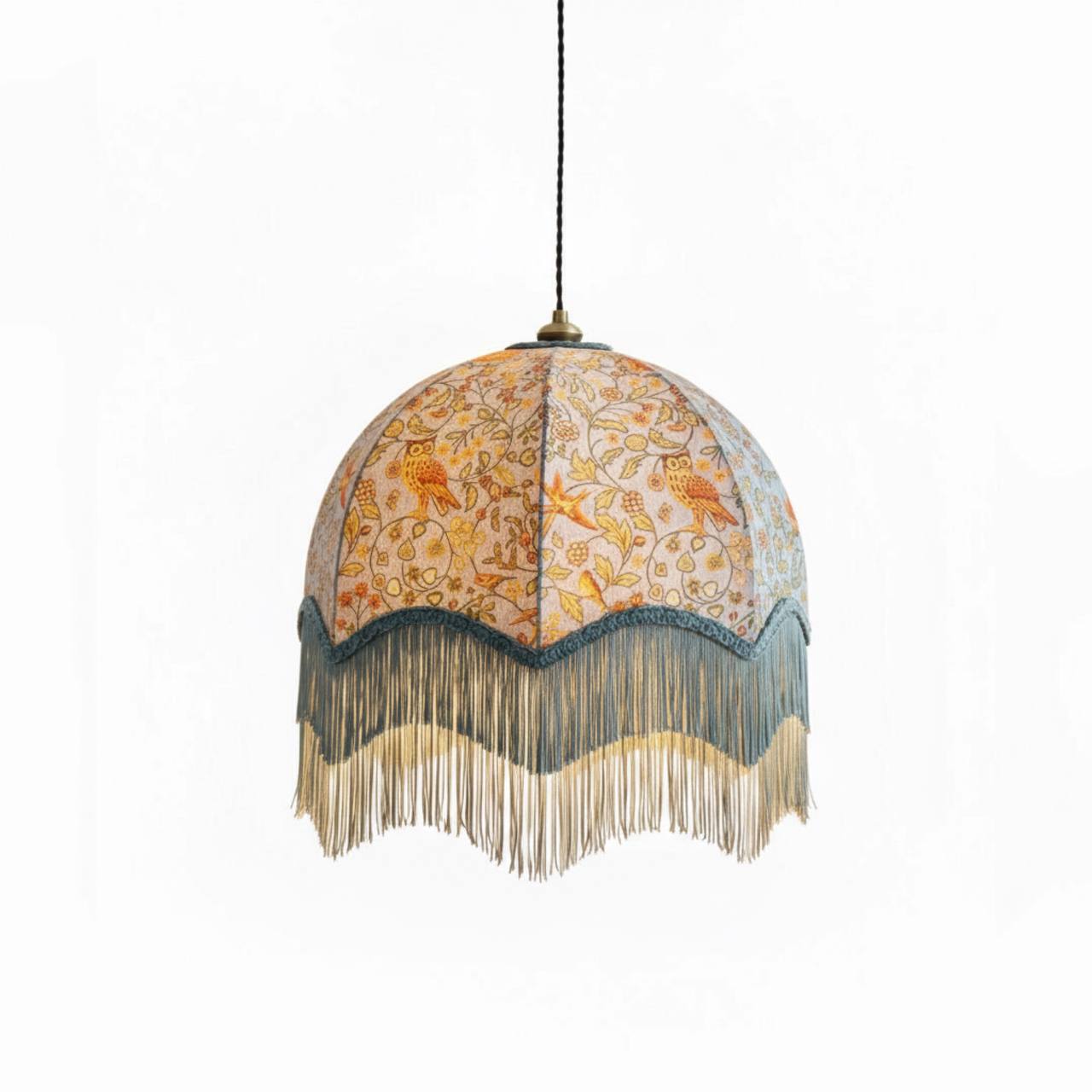 Такие абажуры создают фантастическую атмосферу в центральной части комнаты и могут быть изготовлены для Вас как для настольной лампы/торшера, так и для подвесного светильника. Побалуйте себя прекрасным произведением искусства, сделанным здесь, в Москве. Каждое изделие изготавливается вручную на заказ и занимает 4-5 недель. Это элемент Вашего интерьера, которым Вы будете дорожить и наслаждаться. Такие абажуры излучают мягкое свечение, которое так красиво освещает комнату. Размеры указаны ниже - пожалуйста, имейте в виду, что цвет/длину бахромы можно легко изменить, как и отделка косы. По всем вопросам можете обращаться по номеру телефона 8(9025)561972, с удовольствием ответим на все Ваши вопросы. Маленький - диаметр 36 см Средний - диаметр 41 см Большой - диаметр 46 см Очень большой - диаметр 56 см См. диаграмму на фотографиях для измерений в сантиметрах и дополнительной информации.