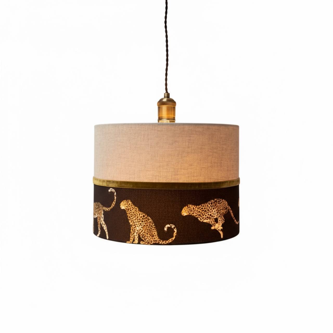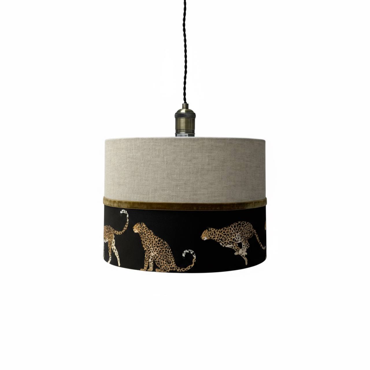Абажур "Гепарды" из двух видов ткани (лен+хлопок с принтом) для настольной лампы/торшера