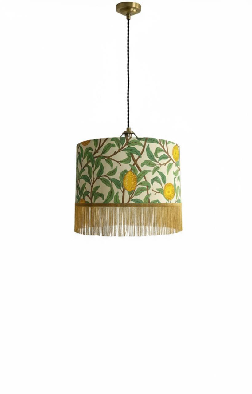 Абажур из хлопковой ткани с принтом известного бренда.