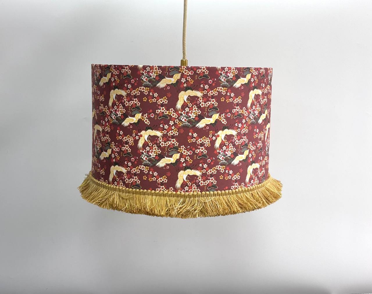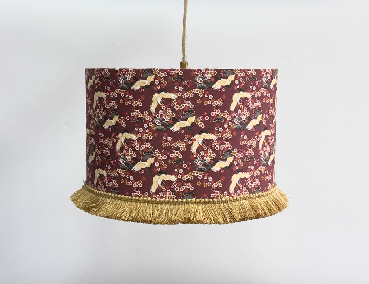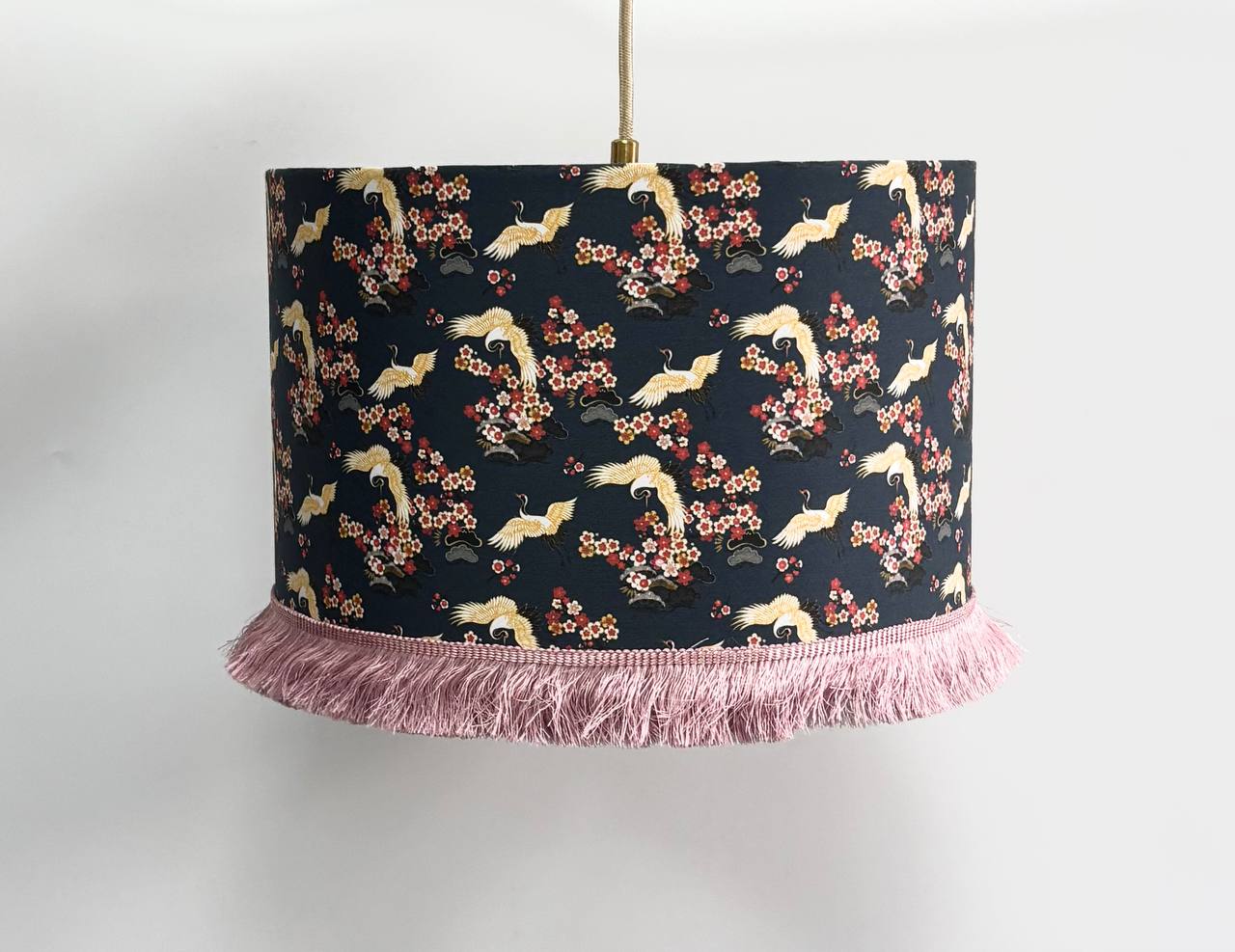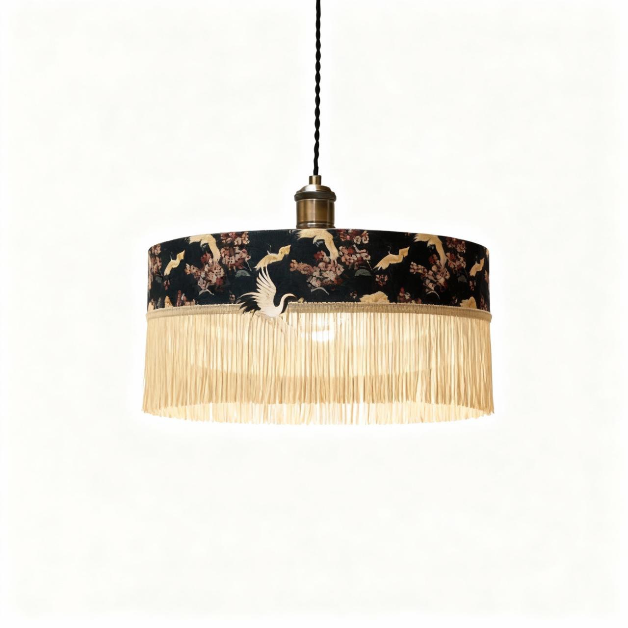 Абажур в восточном стиле с ярким арт-принтом журавлей и цветущей сакуры станет настоящим акцентом в вашем интерьере. Выполненный из хлопка с принтом и украшенный длинной кремовой бахромой, этот предмет создает атмосферу уюта и изысканности, отлично сочетаясь как с классическими, так и с современными решениями. Лёгкое рассеивание света делает освещение мягким и приятным для глаз, а уникальный дизайн впишется в творческое, этническое или ар-деко пространство.