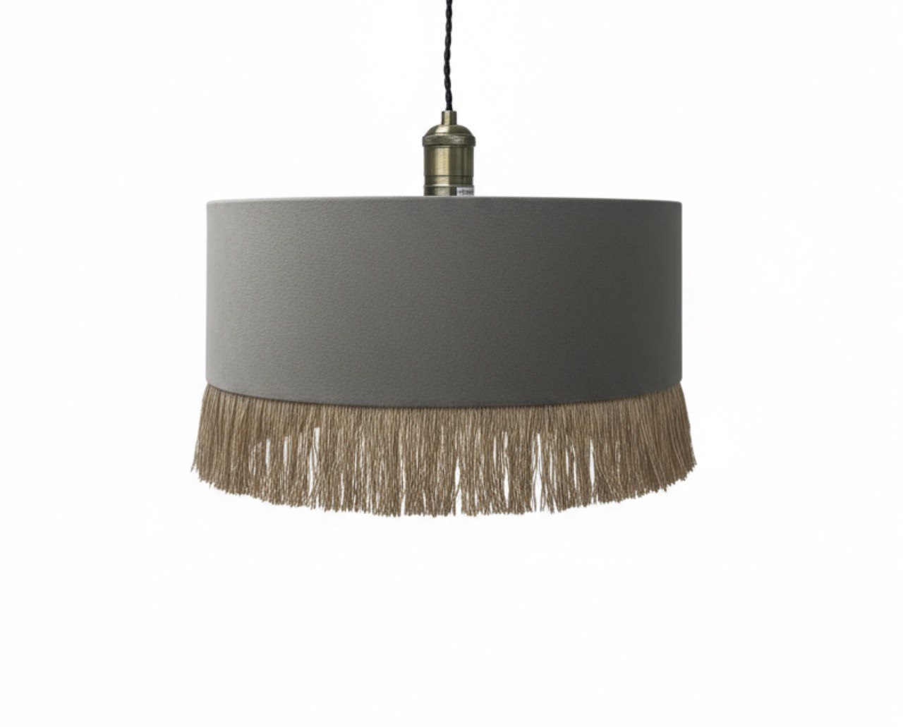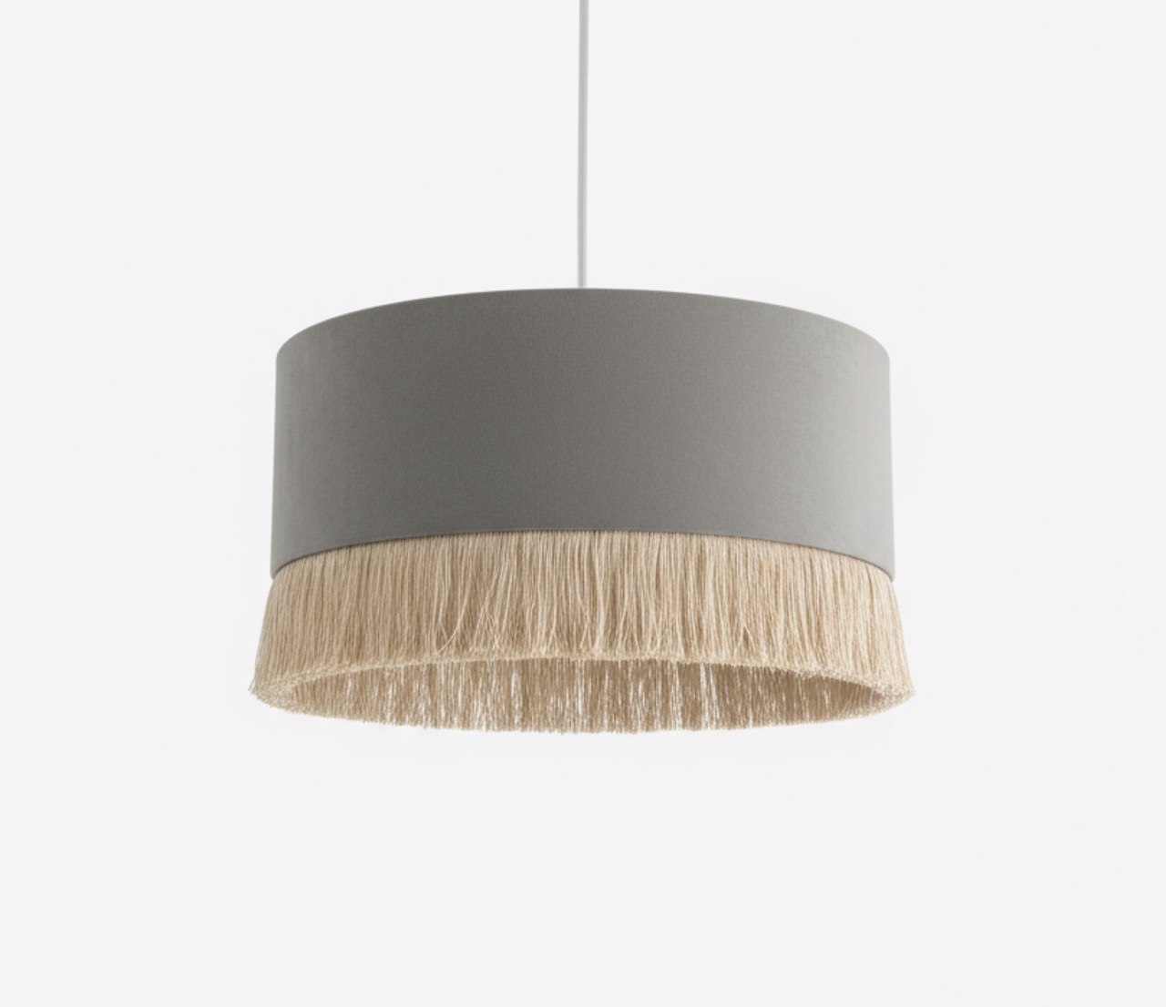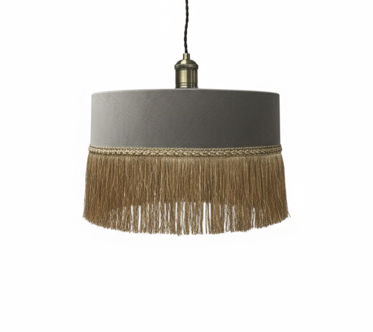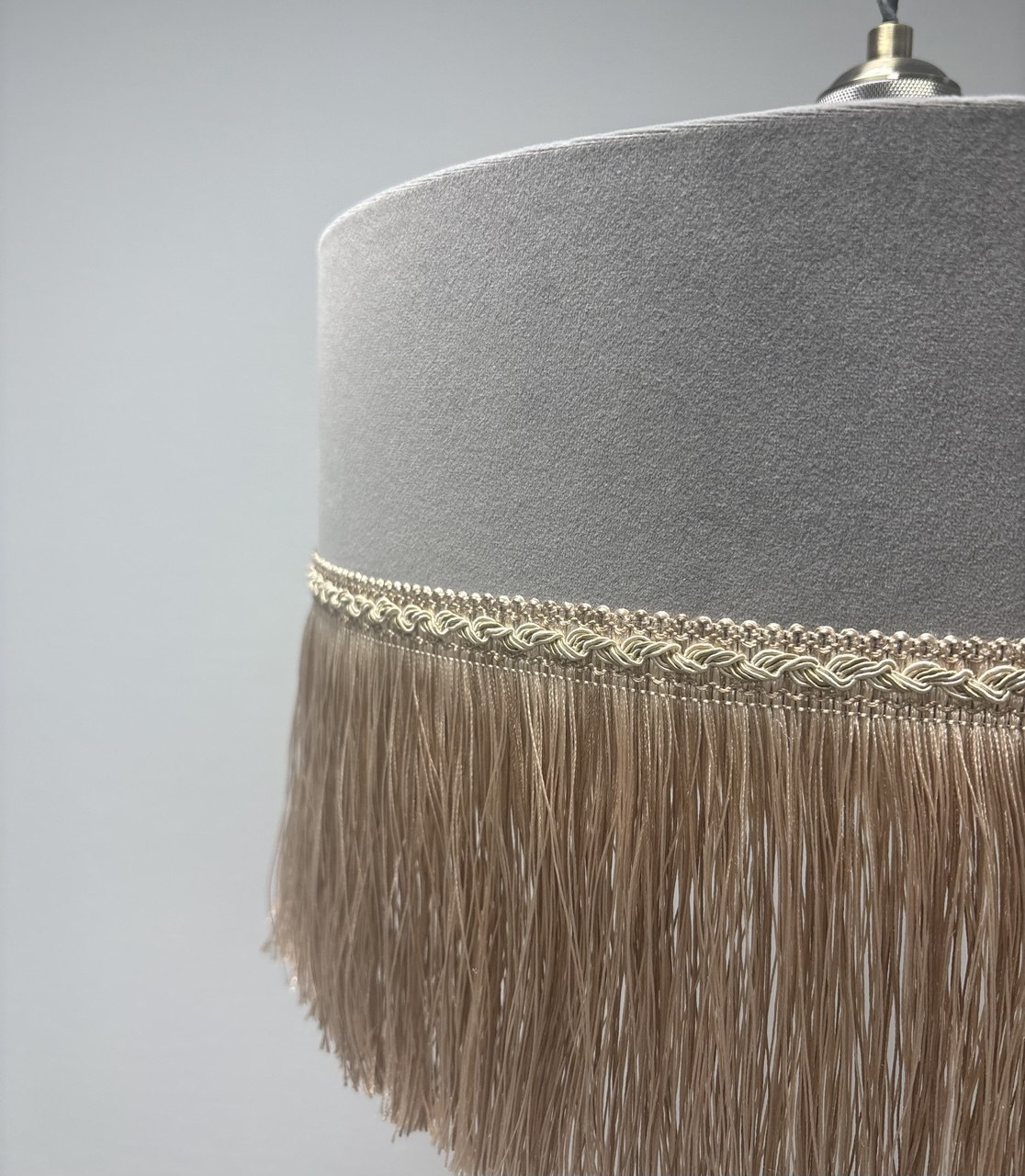 Абажур бархатный с бахромой для потолочного светильника, серый