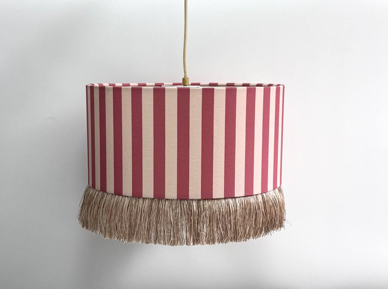 Абажур Candy с бахромой для потолочного светильника, в полоску розовый